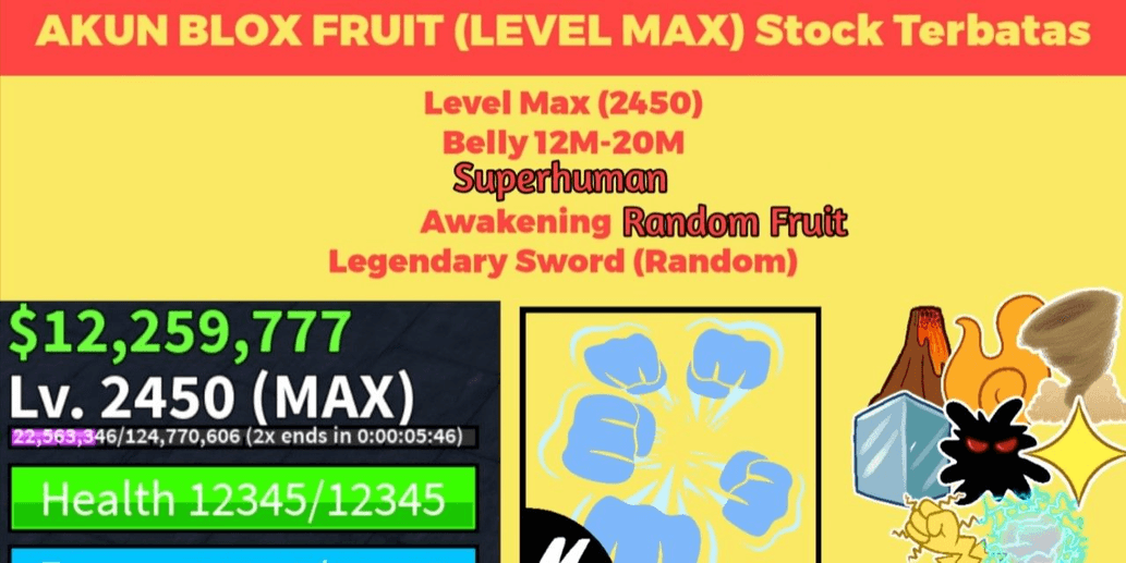 AKUN LEVEL MAX [2 MYTHICAL FRUIT IN INVENTORY] - BLOX FRUITS
