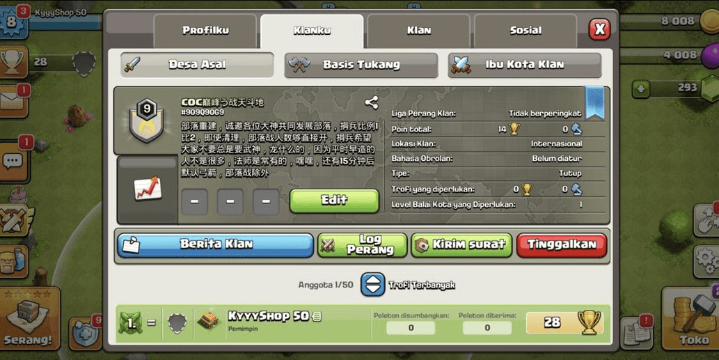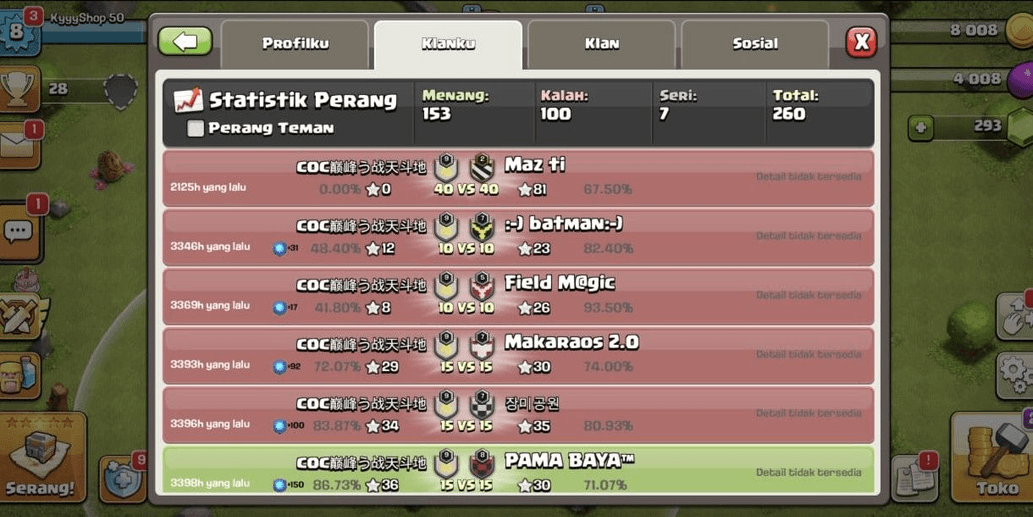 Clan Level 18 / Nick aikacel_9 / Win 319 Lose 167 / Clan Capital Level 7