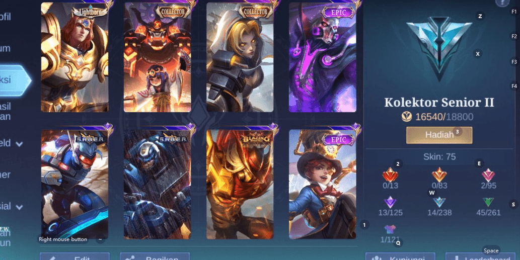 Zenith Selena | Luckybox Selena | Zodiac Selena, Karina, Lancelot | Covenant Lesley | Special Miya | Lightborn Fanny | WR GG Ex Immortal 75