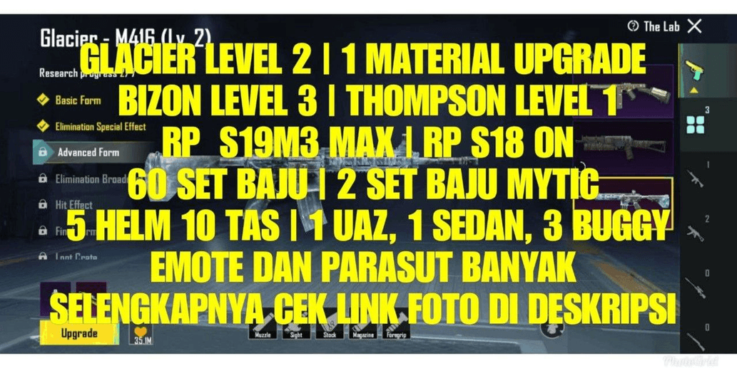 Akun PUBG | Set Baju Mythic 20+ Rare + Skin Lab Rame M416 Glacier Level 2 Keren |