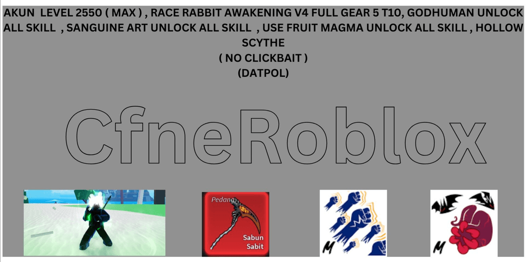Blox Fruit Account GODHUMAN+CURSED DUAL KATANA [Level MAX] [DATPOL]