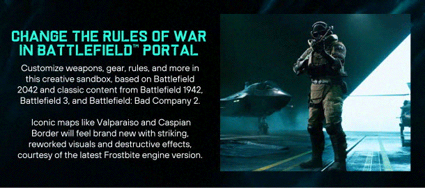 Battlefield™ 2042 is a first-person shooter that marks the return to the iconic all-out warfare of the franchise. With the help of a cutting-edge arsenal, you can engage in intense, immersive multiplayer battles.Lead your team to victory in both large, all-out warfare and close-quarters combat on maps from the world of 2042 and classic Battlefield titles. Find your playstyle in class-based gameplay and take on several experiences, including elevated versions of Conquest and Breakthrough. Explore Battlefield Portal, a platform where players can discover, create, and share unexpected battles from Battlefield's past and present.