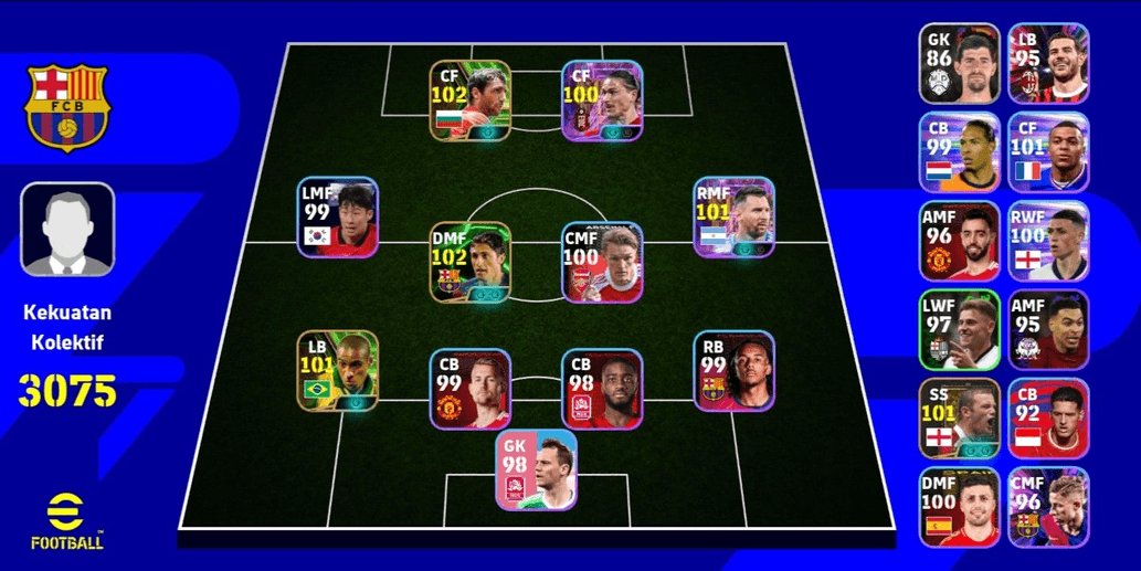 EFOOTBALL MOBILE GG ACCOUNT READY TO USE MANY PLAYERS + MANY POTW GG + 2 RARE MANAGERS | ALL PLAYERS 280+ NO BASE