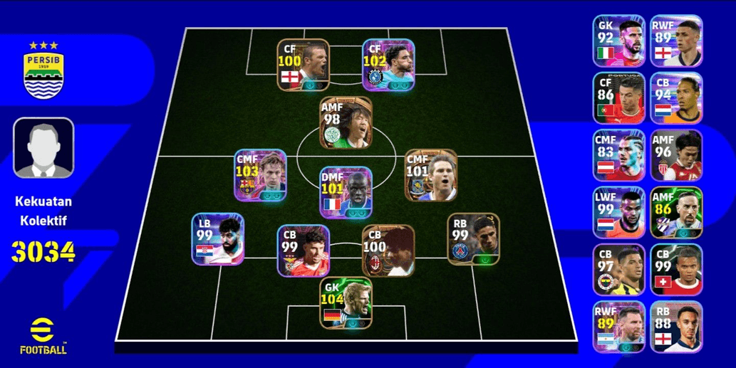 EFOOTBALL MOBILE GG ACCOUNT READY TO USE MANY PLAYERS + MANY POTW GG + 2 RARE MANAGERS | ALL PLAYERS 280+ NO BASE