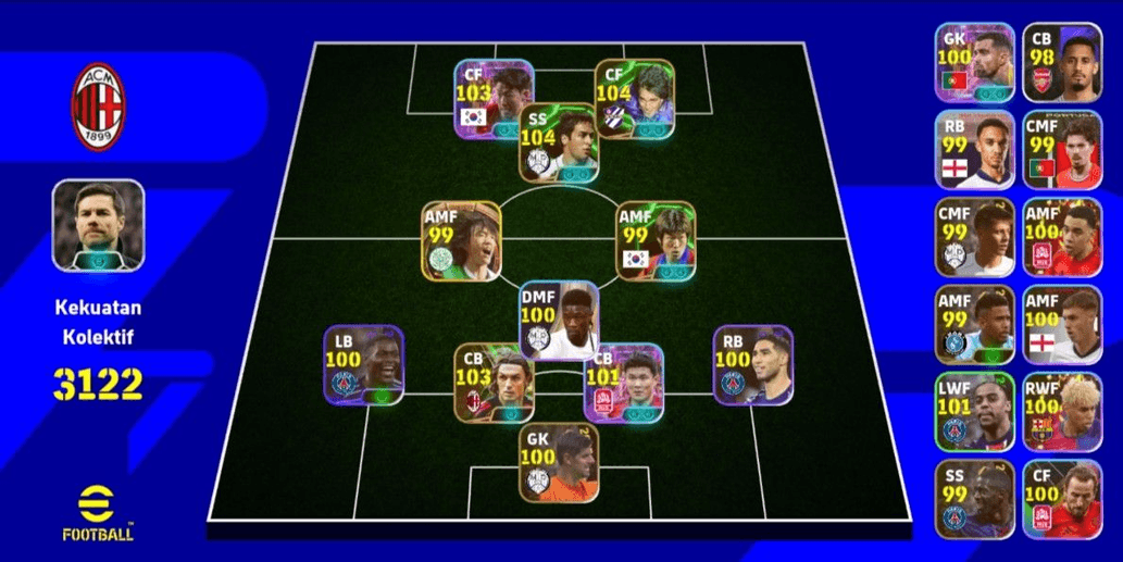 Manager Xabi ada, showtime blitz Son, epic Raul, epic park ji sung, big time nakamura, epic maldini, showtime kim min jae etc.
