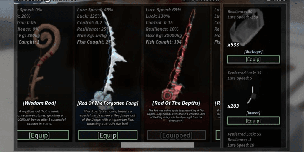 Fisch - Lvl Max (750) Rod Forgoten Fang, Wisdom, No Life, Rod of The Depts, Triden. CS 10.000.000