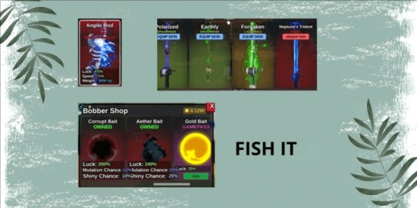 FISH IT - ANGLER ROD, NEW BOB AETHER, CORUPT BOB, 4M COIN