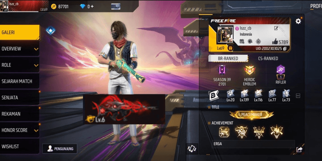 akun sultan & old, 2 max Ak47, Scar, m1014 lvl 6 otw max, sg2 Opm , bundle senjata sultan , langka idaman, auto booyah