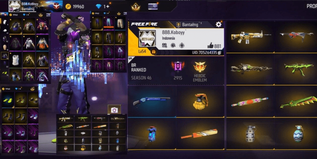 FREE FIRE ACCOUNT VAULT 114 WEAPONS 146 GG CHEAP OP (441)