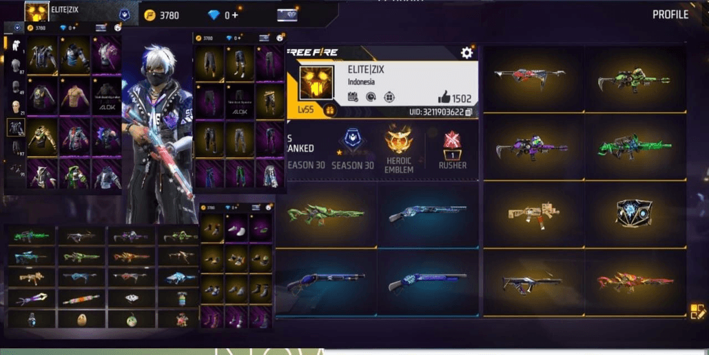 FREE FIRE ACCOUNT VAULT 114 WEAPONS 146 GG CHEAP OP (441)