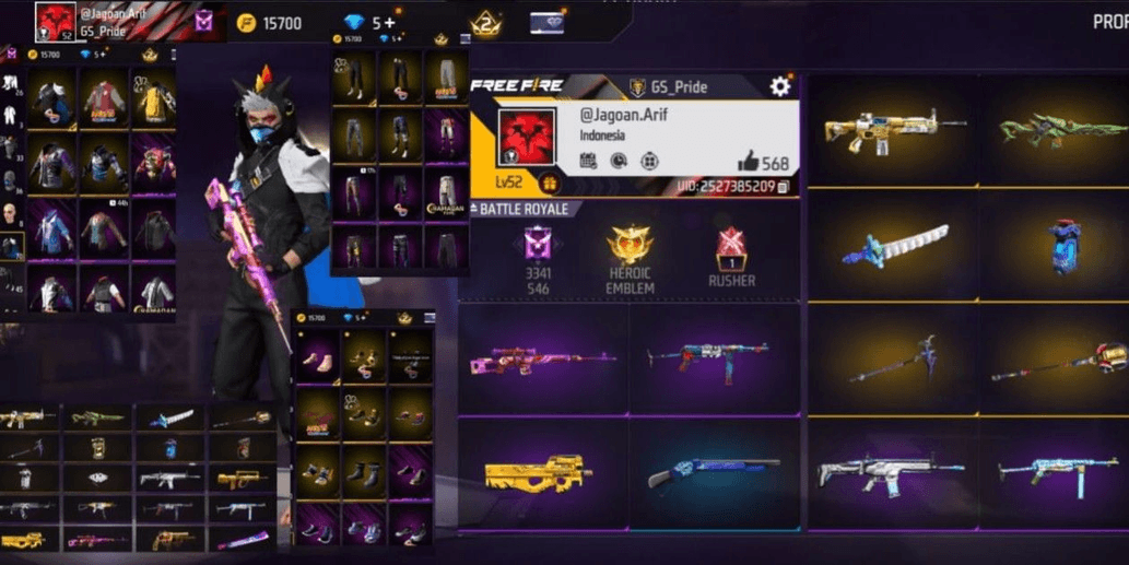FREE FIRE ACCOUNT VAULT 114 WEAPONS 146 GG CHEAP OP (441)