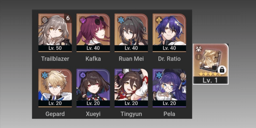 Saber[Sign], Archer[Sign], Phainon, Firefly, Kafka, Silver Wolf, Fuxuan, Luocha, Ruan Mei, Seele[E1], Dr.Ratio, Bronya[E1] MC Female