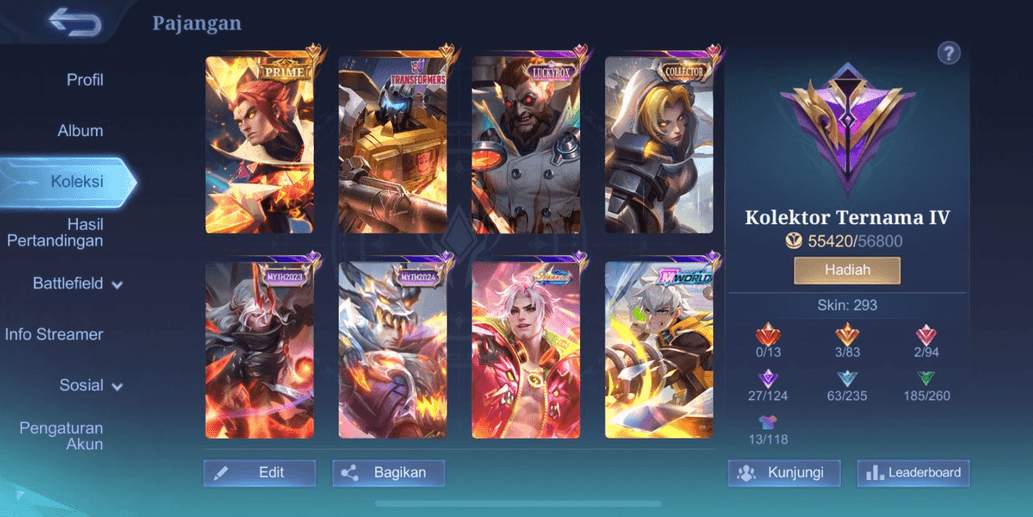 ML Sultan Account with 552 Skins, Max Hero, All Max Emblems. Naruto Skin Lukas, 4 Legend, Collector YSS Balmond, 12 Zodiac, 3 Transformer, Stun Selection, 47 Epic. Safe Account