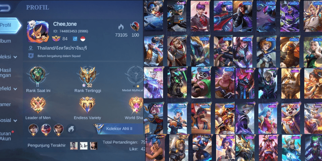 MOBILE LEGEND ACCOUNT CHEAP GG [17] HERO 88 SKIN 78
