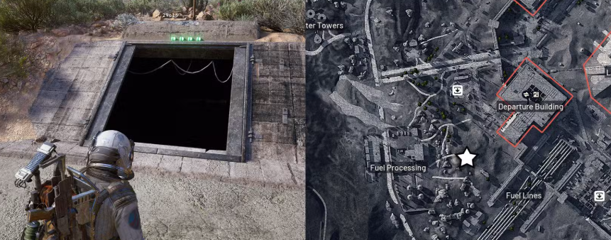 The Hidden Bunker is located west of the Departure Building on Spaceport. It has multiple entrances, all in the same area, so finding it isn’t difficult once it’s revealed.