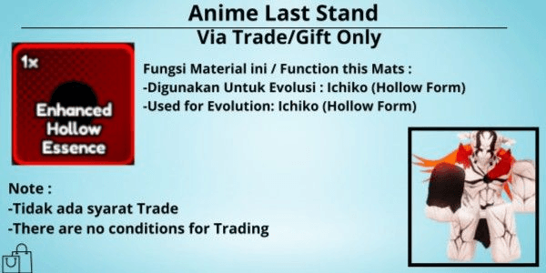 Steps/Trading Process: - Seller/Buyer provides Private server link / ADD - Seller will deliver via Gift / Trading - Done Material required for Evolution: Ichiko (Hollow Form)