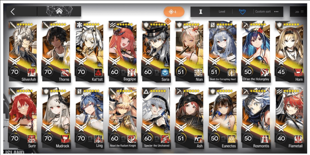 [Global] Lv101 8 Limited Chen, Specter, Ling, Nearl, Ash, Nian, Skadi, Rosmontis | 44 Operators *6 | Skin Outfits 62 A48