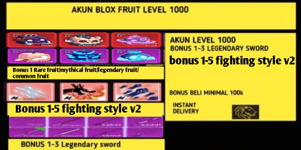 BLOX FRUIT ACCOUNT PROMO LEVEL 1000+ BONUS FRUIT