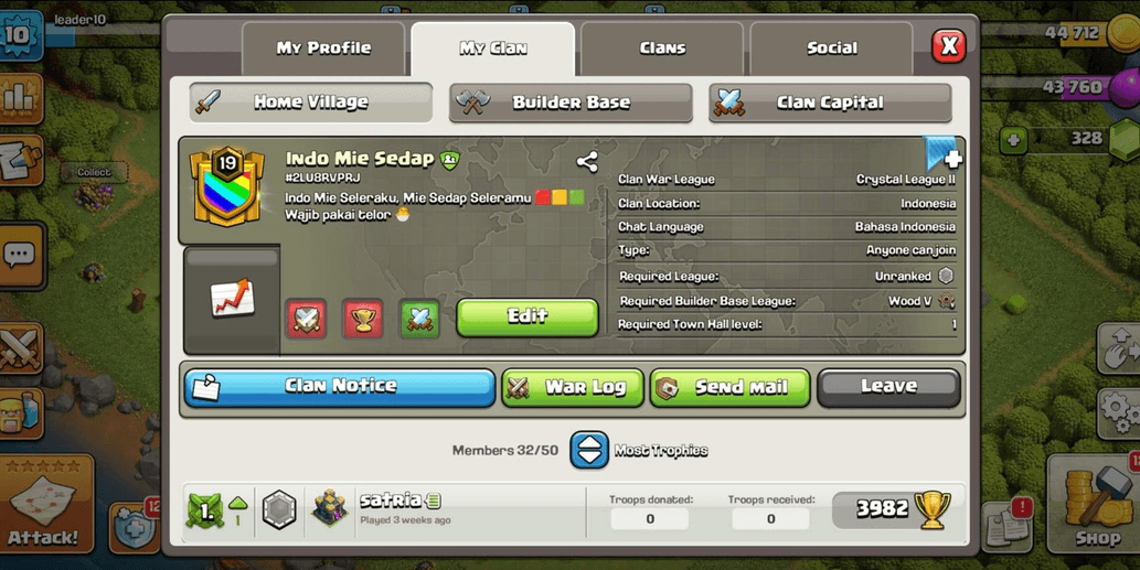 CLAN LVL 19 | Indo Mie Sedap | CH 10 MAX | CRYSTAL II