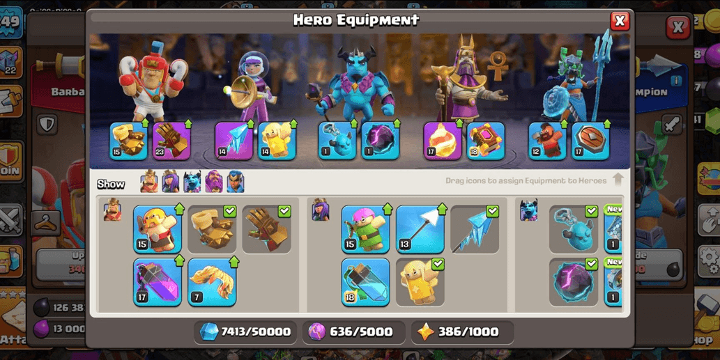 SCENERY DARK | 2 SKIN LEGEND | TH14 SEMI MAX | EXP 194 | BOSS | HERO 71 80 51 54 30 | GEMS 521 | CN 1000