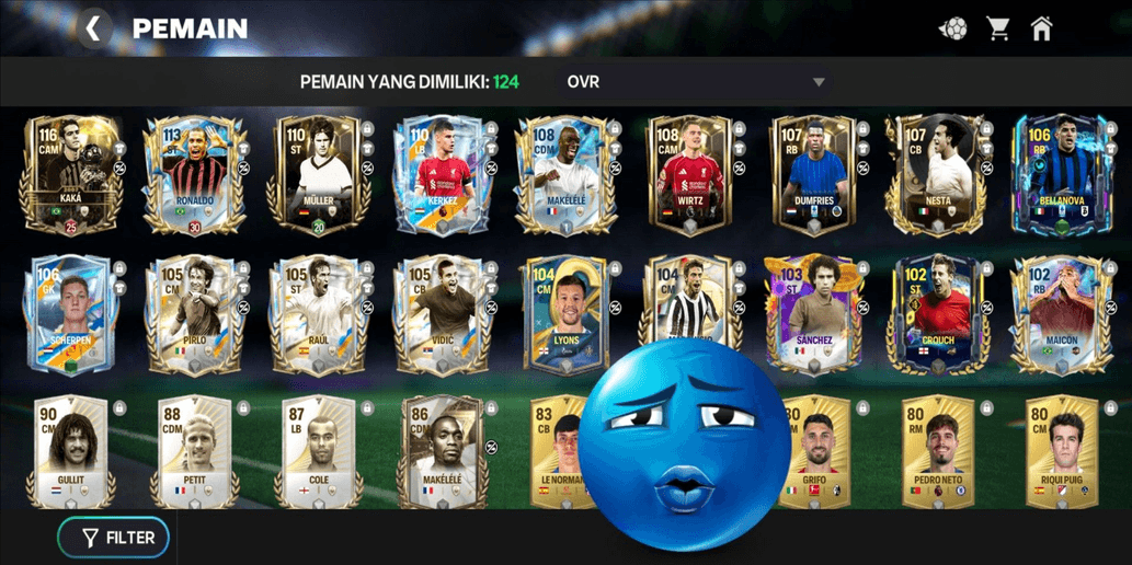 AKUN EA FC SULTAN OVR MAX 110 ALL PLAYER LVL MAX LVL 25-30 RANK H2H MANAAGER LEGEND I III ASET COIN 1.5M(GINOLA, OWEN, GUTTI, TOURE)