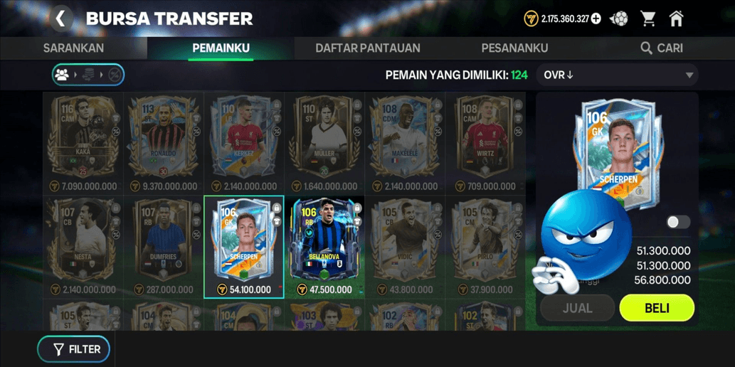 AKUN EA FC OVR 106 ALL LVL PEMAIN 10-15 8 MESCHE ASET COIN 1.2M(MESSI, DEL PIERO,MAICON)