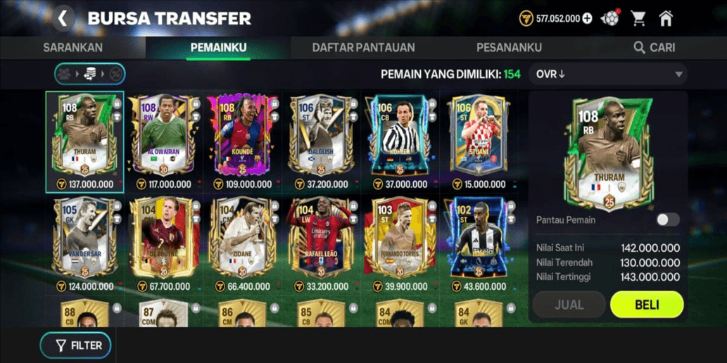FC MOBILE ACCOUNT OVR 95 CONTENTS HUIJSEN 111, THURAM 108, SCHOLES 108, SQUAD GG! [4]