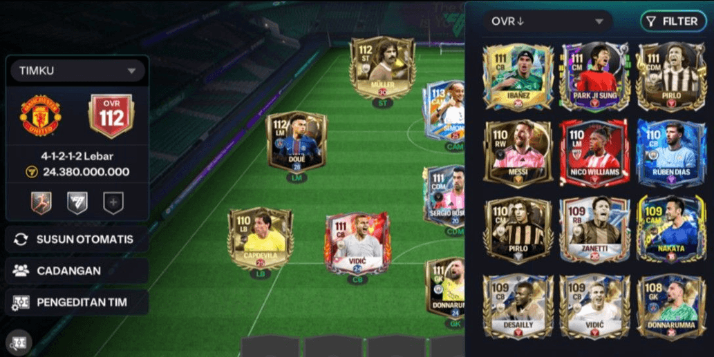 FC MOBILE ACCOUNT OVR 112 OTW 113, LEVEL 25-30, DUET DUO GOAT READY, MAIN LINEUP ALMOST ALL OVR 110+, SUITABLE FOR PERSONAL USE.