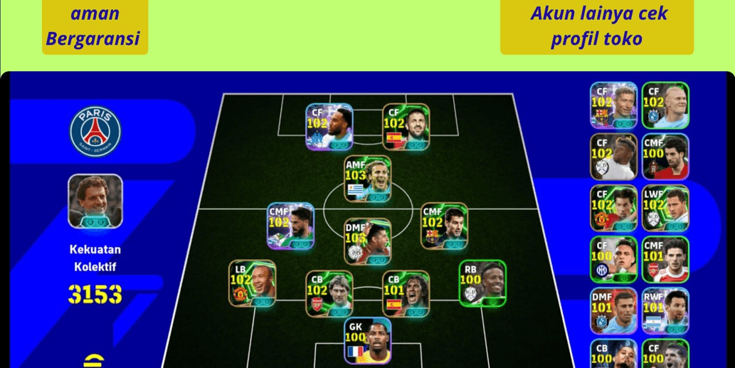 PLEASE ORDER OTHER ACCOUNT STOCKS? check shop profile SHOP NAME: musgem Feel free to chat for inquiries ACCOUNT INFORMATION ================ LOGIN: KONAMI ID ONLY (CAN BE CHANGED TO YOUR PERSONAL EMAIL) 100% SAFE ACCOUNT, ANTI BAN (IF THERE'S AN ISSUE WITH THE ACCOUNT, PLEASE CHAT) ACCOUNT SPECIFICATIONS ================ TOTAL MANAGERS: 4 TOTAL PLAYERS: 58 UNIFORMS: 5
