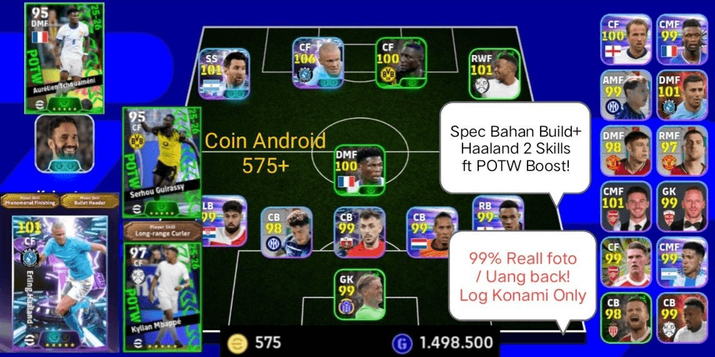 ♻️ HELLO BRO, WELCOME AND HAPPY SHOPPING AT AGUS WIJAYA'S BS STORE ☺♻️ BUY ACCOUNTS HERE = FULL GUARANTEE, BRO, ANTI-HACK, ANTI-DRAMA, ETC. + OUR PRODUCTS ARE 99% ALWAYS AS SHOWN IN THE PICTURE & DESCRIPTION OF THE LISTING 🙏✅ ✌😊 STOCK IS ALWAYS READY, NO NEED TO ASK AGAIN, BRO 👌 LOGIN: KONAMI ONLY - GMAIL FOR OTP CODE (Google Play/iOS empty) (Konami data transfer) (FULL ACCESS) ANDROID & IOS 🔰 Selling safe personal eFootball accounts! Spec Ready for Build & Play ft The Strongest Haaland 💥 On❗ ⚽ Total players = 121 (Including Base) 💰 Resources = 575+ Android Coins, 1.4M+ GP 🔥 MANAGER R. AMORIM D BOOSTER ON❗ Real🫂 won't disappoint! Guaranteed satisfaction, bro :) ❗ ADMIN WILL ASSIST WITH ACCOUNT SECURITY PROCESSING ❗ ❗ BUY ACCOUNTS HERE WITH FULL GUARANTEE. IF THERE ARE ANY ISSUES WITH THE PURCHASED ACCOUNT, THE ADMIN WILL TAKE RESPONSIBILITY AND PROVIDE SERVICE ACCORDING TO APPLICABLE TERMS ❗ THANK YOU, BRO 🤩 #HAPPYSHOPPING🏷💵