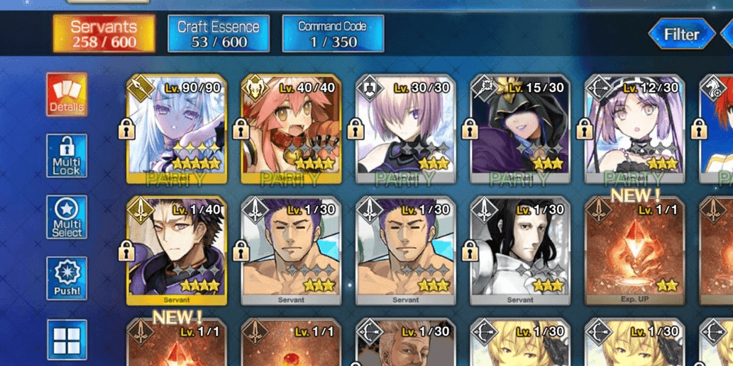 Level 136 | 19 SSR, 48 Servants*4 | Melusine Lv100, Morgan Lv100, Karna (Santa) NP5, Pendragon (Lily) NP5, Idol X (Alter) NP5