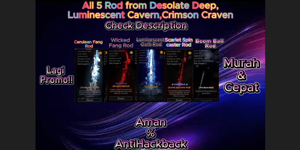Joki Get Scarlet Spinecaster, Cerulean Fang, The Boom Ball, Luminescent Oath, Wicked Fang Rod Without Coin | Fisch