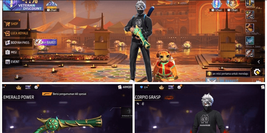 SELL FREE FIRE ACCOUNT PURPLE SG | EVO SG | SCAR TITAN | AMBOE MASK | GENJIE BUNDLE & OBITO BUNDLE
