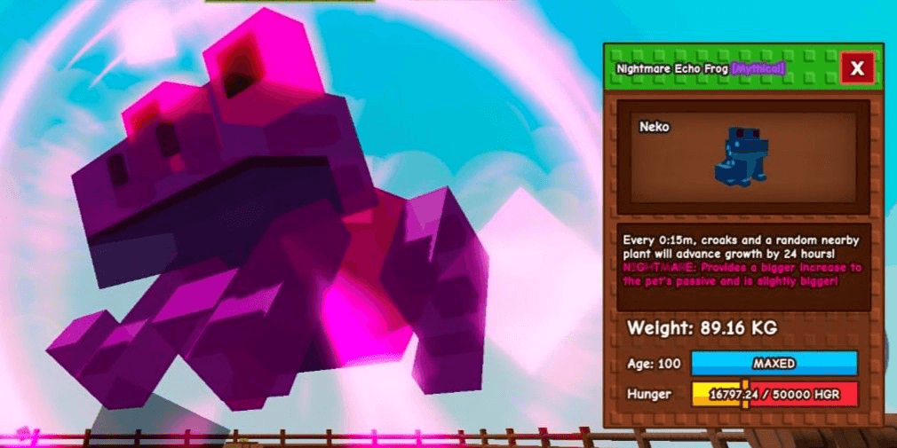 Titan Godly Nightmare Echo Frog 89KG Cd 15sec Grow a Garden (NEW MUTATION)