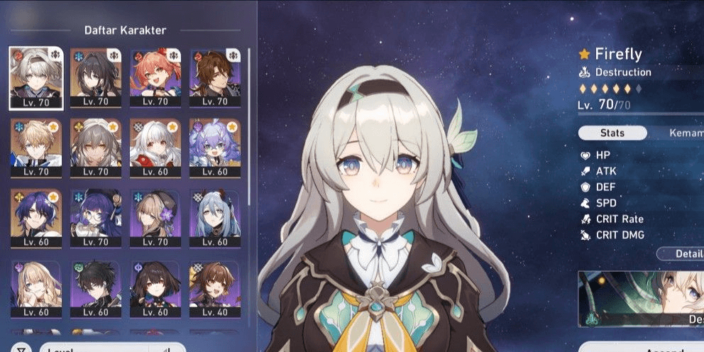 Akun HSR (Lv 70) Cerydra + Phainon + Castorice + Tribble + Aglea + The Herta + Jade + Sunday + Firefly + Acheron + Black Swan + Ruan Mei + Feixiao