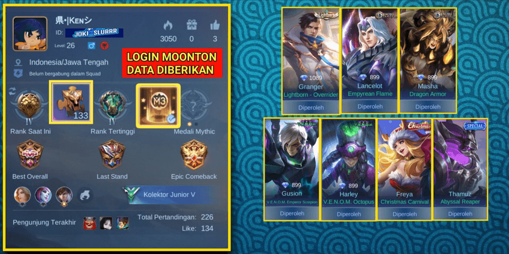 Akun GG Mobile Legends PROMO MURAH (#96)