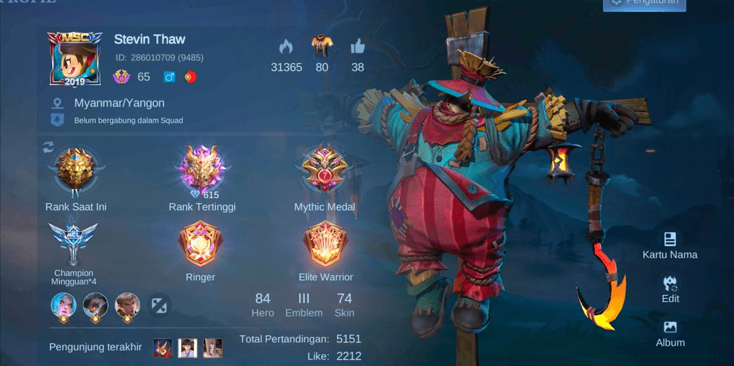 Mobile Legend Account Hero84 Skin74 Allunbind ExGlory 600s Very Good Safe Luxurious