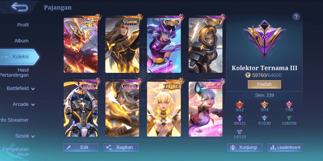 SKIN 345!! ML ACCOUNT WITH LEGEND SKIN GORD, JUJUTSU KAISEN XAVIER, COLLECTOR BRODY, 2 PRIME, 4 LUCKYBOX, 3 ZODIAC, 35 EPIC/899 DIAMOND EX GLORY
