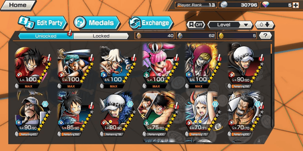 STARTER [Android/iOS] 2 Extreme Edward Lv89, Zoro Ashura Lv80 | SOLO FRESH Oden Light, Dark Rayleigh, Light Carrot O120
