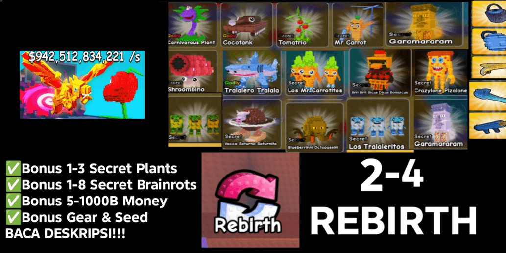 Akun Starter Max Rebirth Bonus Secret Limited - Plants Vs Brainrots