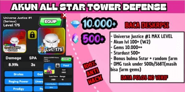 MAX universe justice starter account #1 7STAR | all star tower defense | astd account | all star tower defense account | MAX JIREN