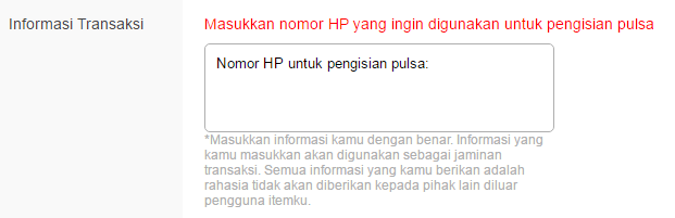 2. Enter the mobile number you want to use for top up in the Transaction Information column (not in the Cellphone Number column)