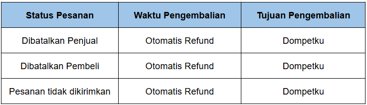 Khusus pembeli yang menggunakan metode pembayaran DANA Linkage, pengembalian dananya akan dikembalikan ke limit/saldo DANA tersebut.
